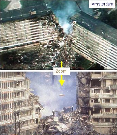 Amsterdam, 4.10.1992, Einschlag einer Boeing 747 von EL-AL in einen Wohnblock. Kompletter Durchbruch. Breite der Bresche oben 25 m.